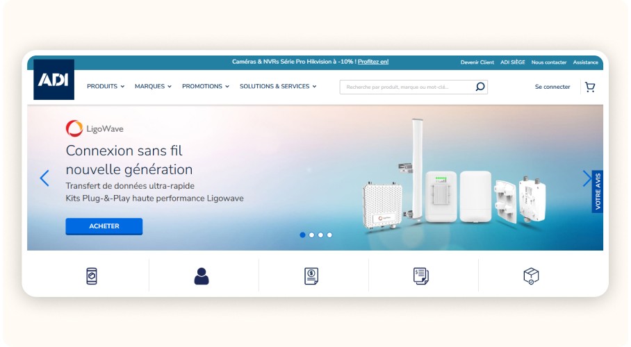 ADI Global est l’un des fournisseurs de produits de sécurité les plus populaires aux États-Unis. Son catalogue couvre les principaux besoins en sécurité: